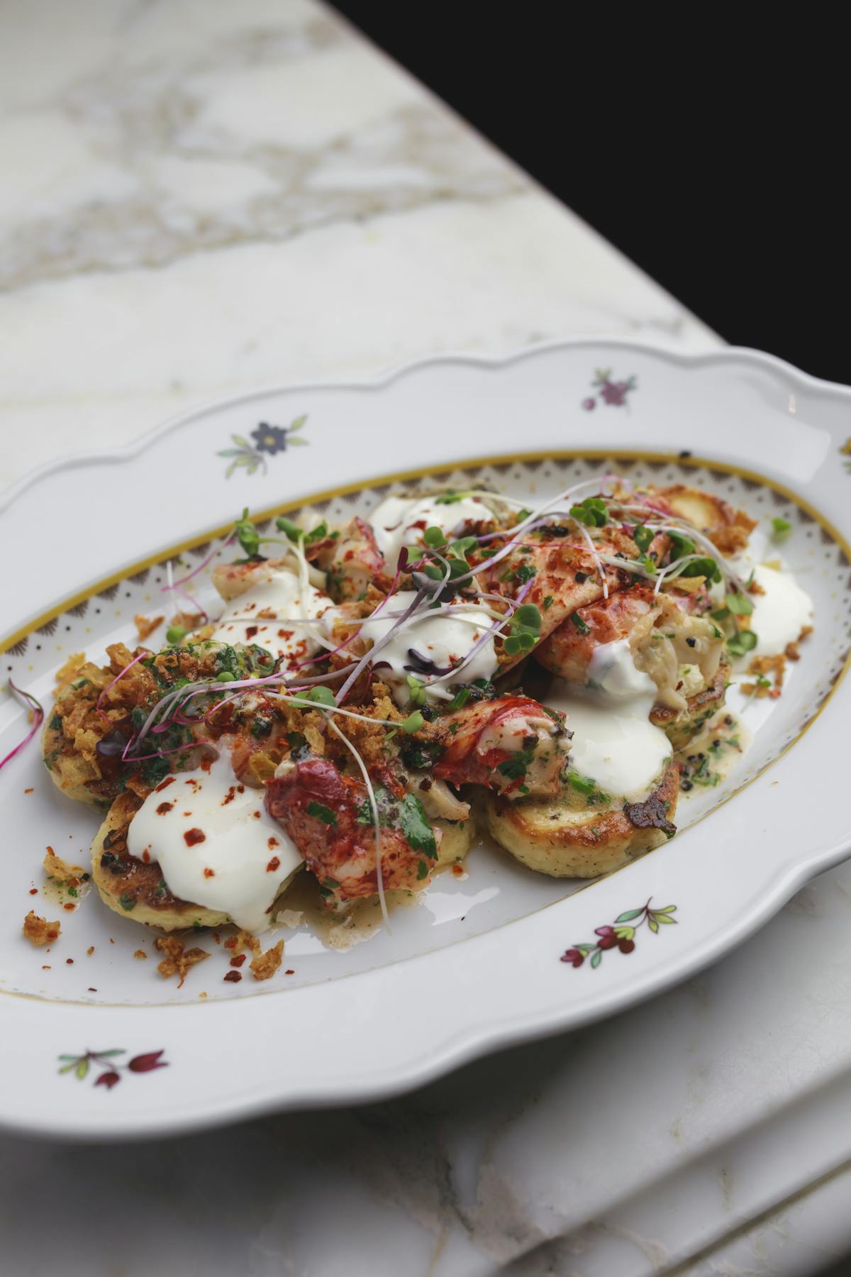 ricotta dumplings, black truffle butter, onion crunch, lemon crema